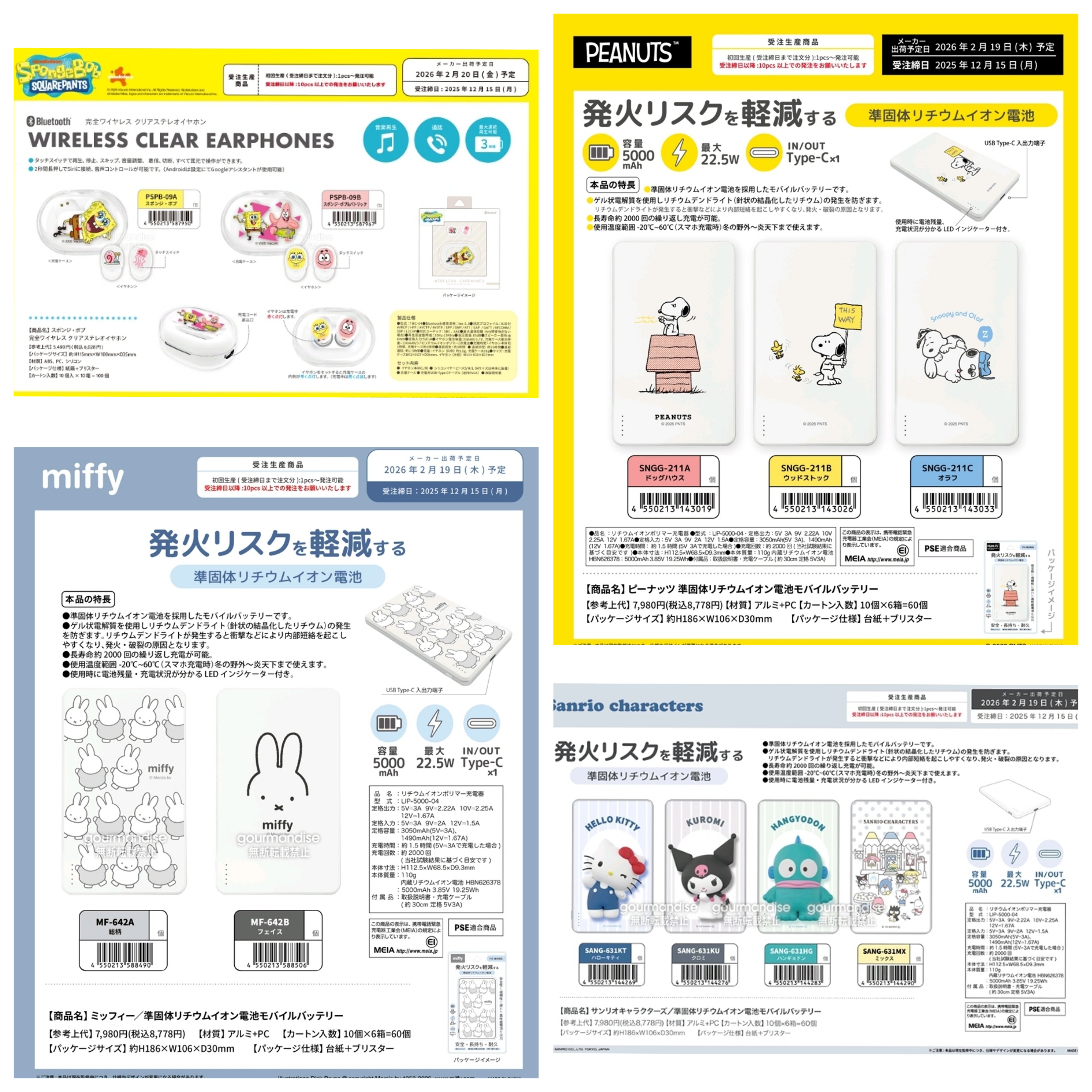 日本直送~新款卡通藍牙耳機或降低著火風險充電器 價格請查詢