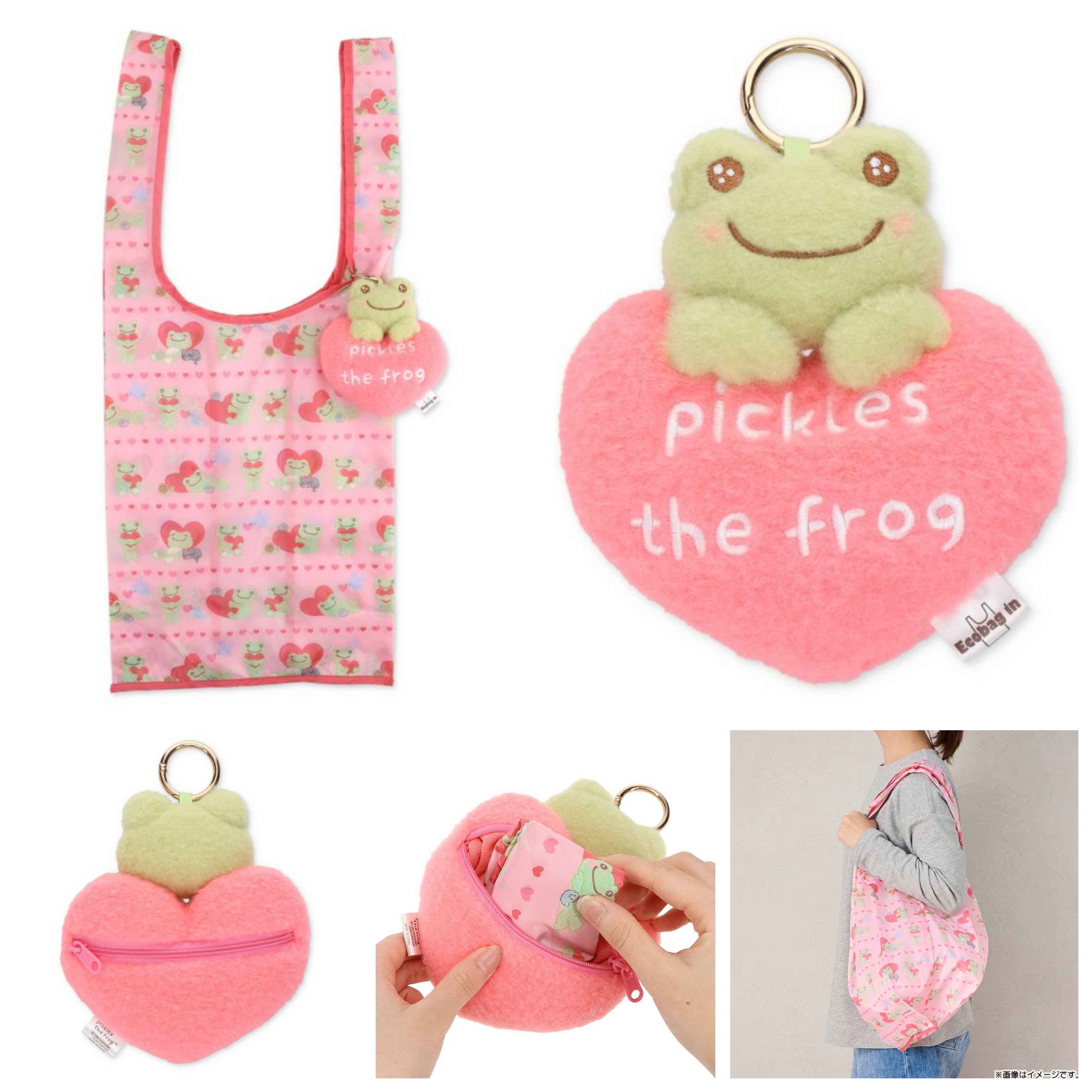 日本直送~新款Pickles the Frog 愛心豆公仔連環保袋